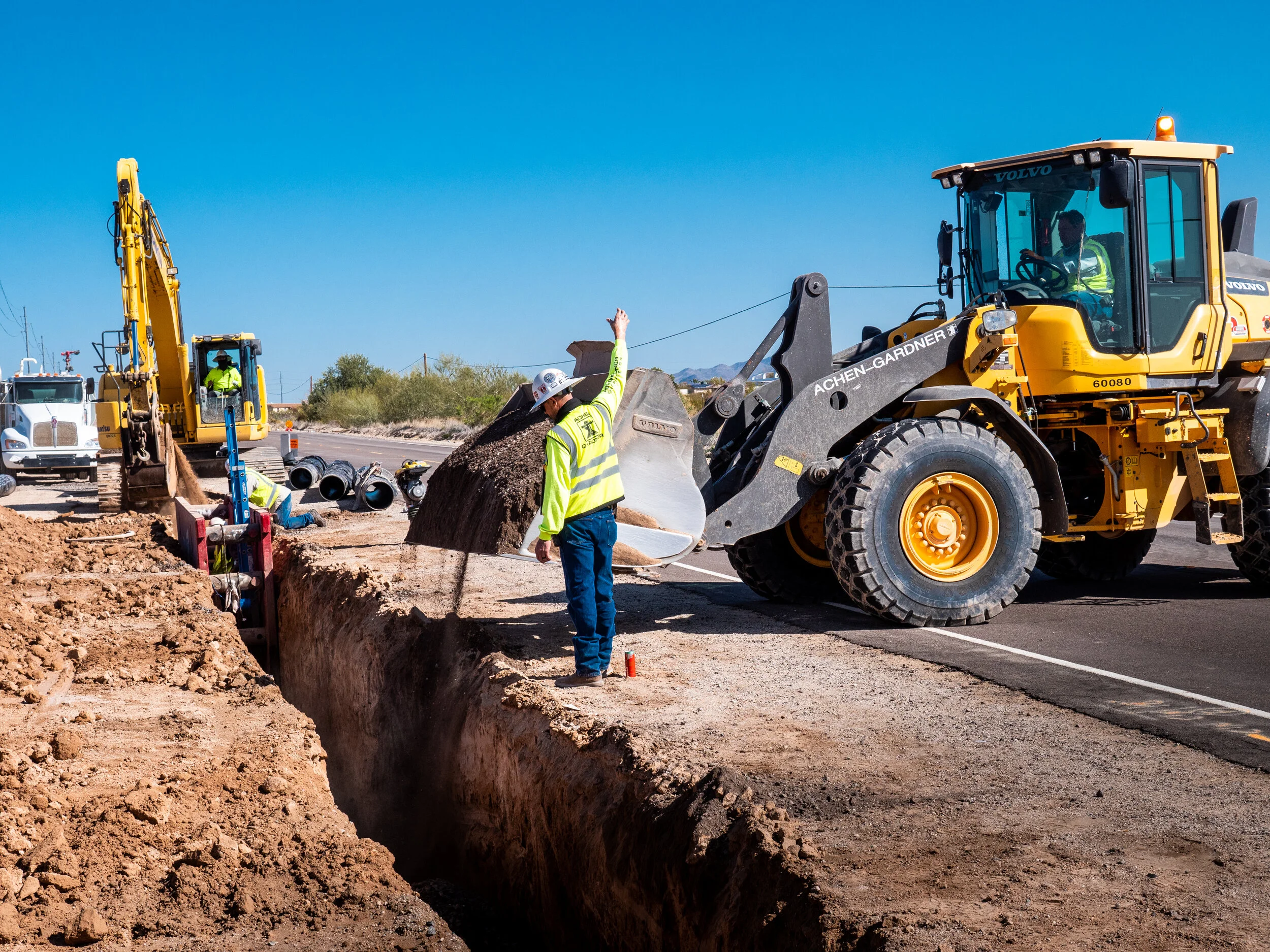 JO#2: We installed more than 1,300 LF of 16” DIP and 1,200 LF of 12” DIP water line on the Buckeye Municipal Airport property. We also installed five hydrants and six valves.